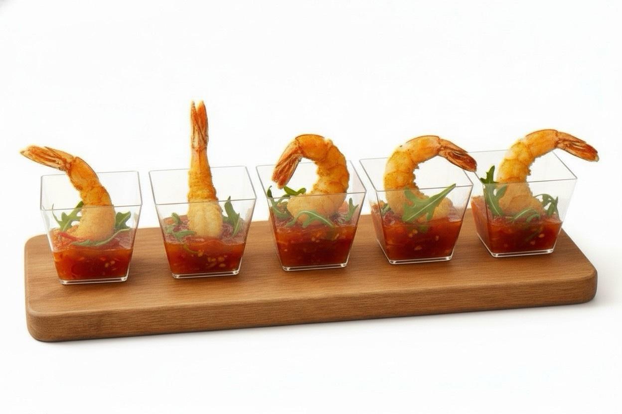 Шот с креветкой в кляре и соусом сладкий чили